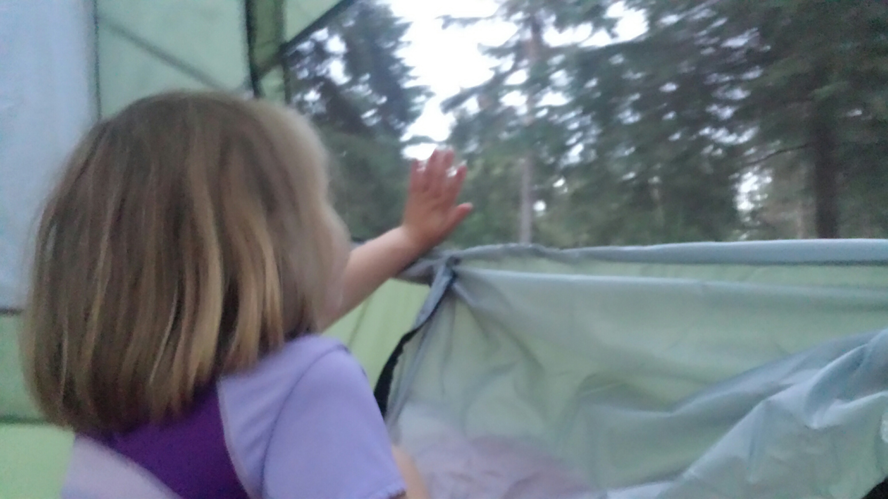 We quickly set up camp, and spent the evening playing in the surrounding woods. The girls did have a hard time falling asleep, since they were so excited. When quiet hours started, we loaded them up into the car and went for a quick drive. They fell asleep and we easily transferred them back into their sleeping bags. We even got a blissful hour to sit outside the tent by ourselves before we called it a night. To our surprise, they both slept through the night, and we all woke up more refreshed than we’ve been in months. Both girls were so excited when they discovered that we were STILL in the tent in the morning.